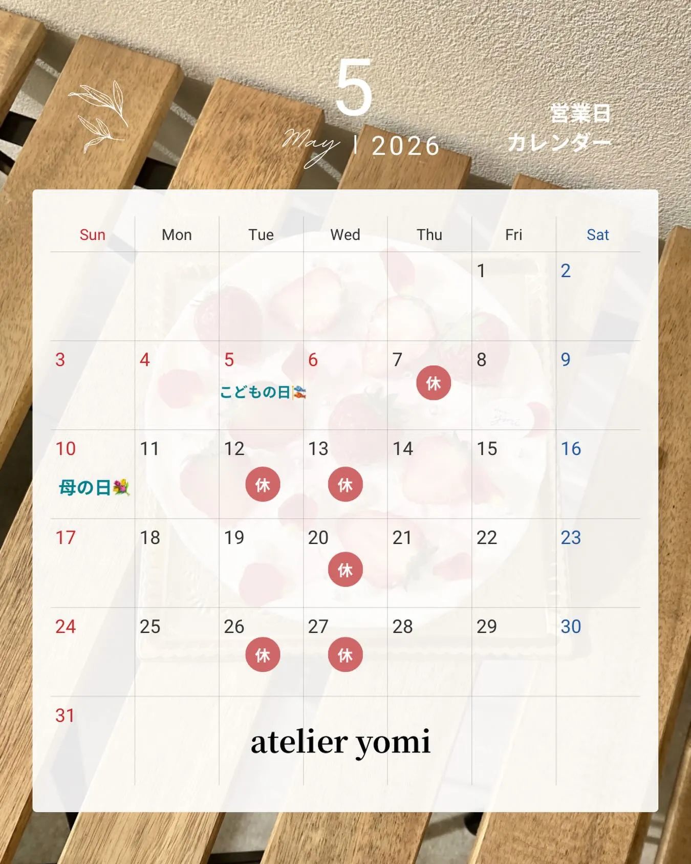 5月の営業カレンダーです🌻